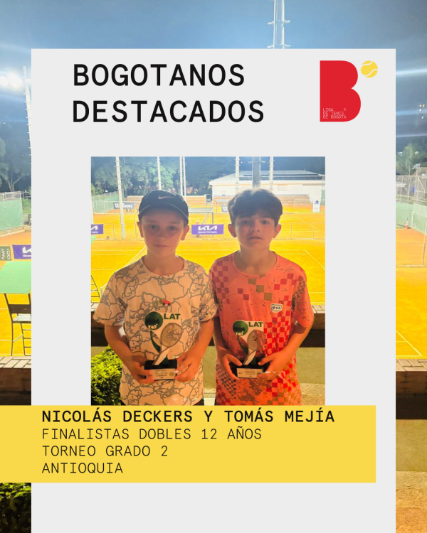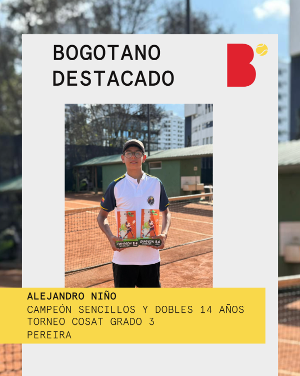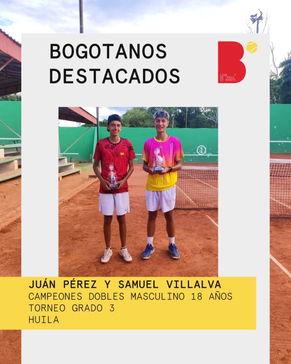 Felicitamos a nuestros jugadores bogotanos por su gran desempeño en competencias nacionales. Su entrega y pasión por el tenis destacan el trabajo que realizan en la Liga de Tenis de Bogotá durante el mes de noviembre.